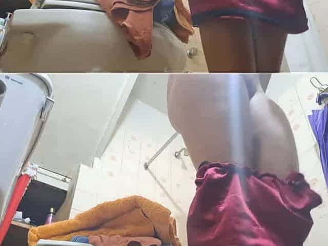 Intensive squirts of hot gal in gym bath nearly caught by instructor