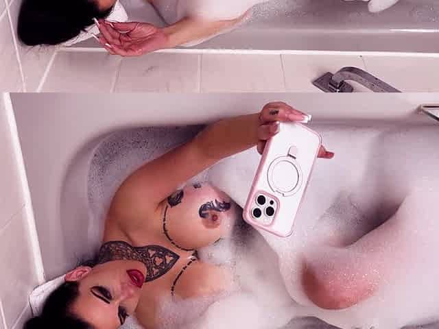 Big-titted Kelly's bath time an intimate webcam show.