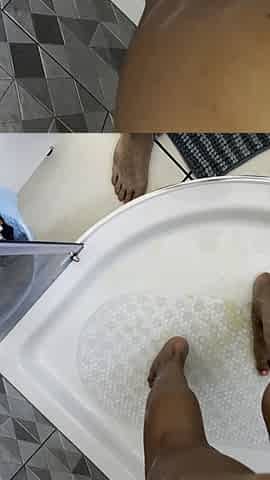 Lustful ebony gal taking a shower and masturbating her gorgeous cunt in the bath.