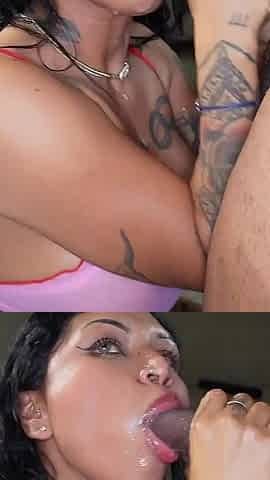 Kaylani Cream gives a wild blowjob to a dark-haired nymph with a big black cock