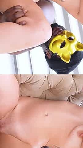 Catgirl Squirts from Big Black Cock DP with Sex Toy