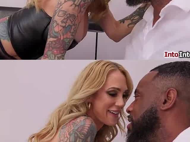 Large ebony wang enters blond hotty's vagina