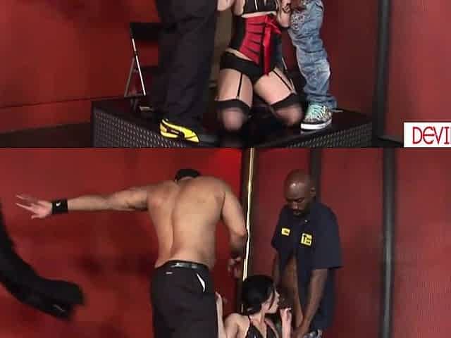 Small white pole dancer double permeated by 2 ebony males