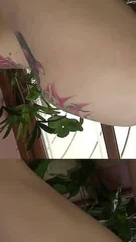 Belle transsexuelle, branle avec ses pieds son gode noir préféré