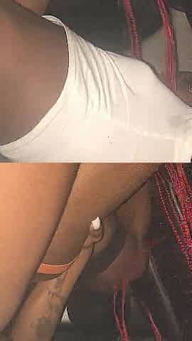 Ebony Transgender bangs slender male inside car leaving cum