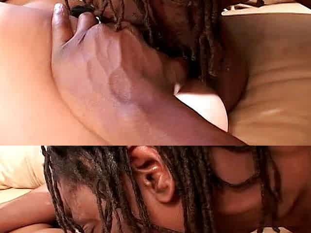 Nasty ebony gets both holes hammered deep by a muscular black guy