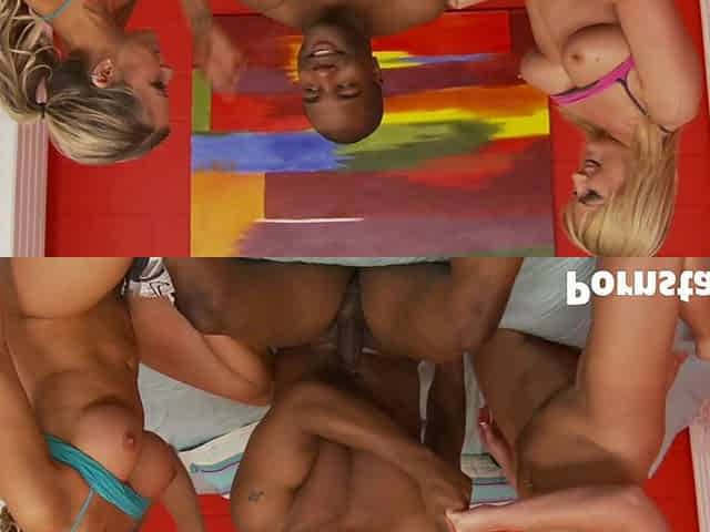 DP white-black orgy with 2 hot babes and their nasty fuckers black&white fuckers