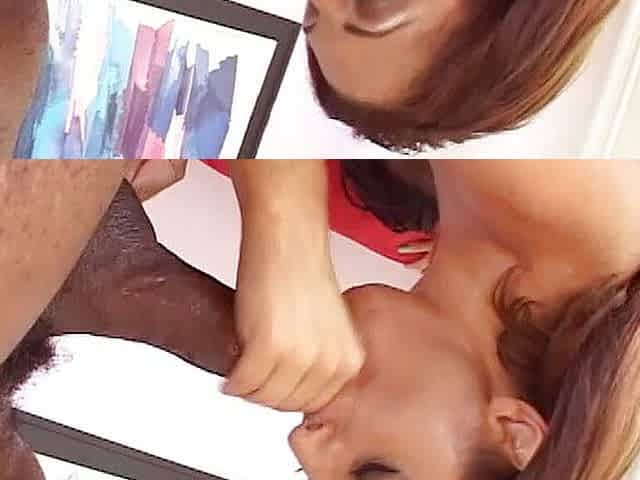 She attempted to deepthroat his massive dick before he shoved it right into her tight, white cunt