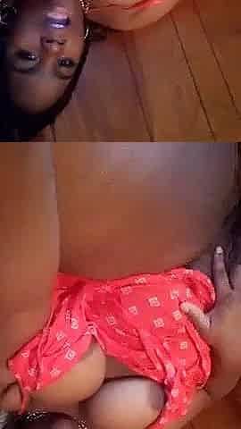 This babe lays down on her abdomen, shoving her butt back against that large ebony weenie