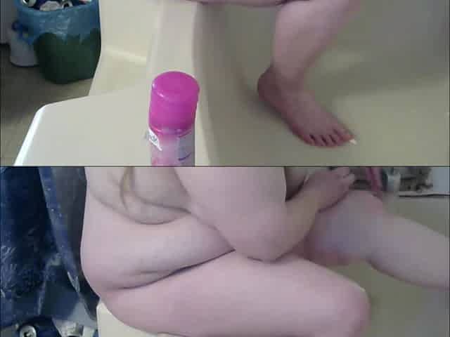 BBW Stepsister When Alone at Home Sucks and Jerks off 's Dildo in the Bathroom