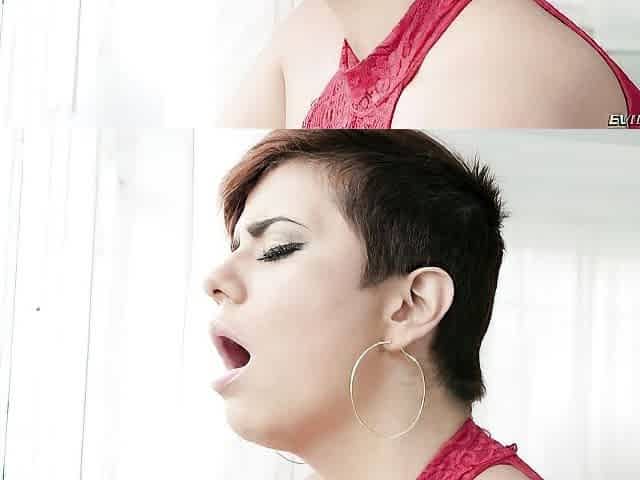 Natural boobs Latina Liza Del Sierra enjoys sucking a large dick