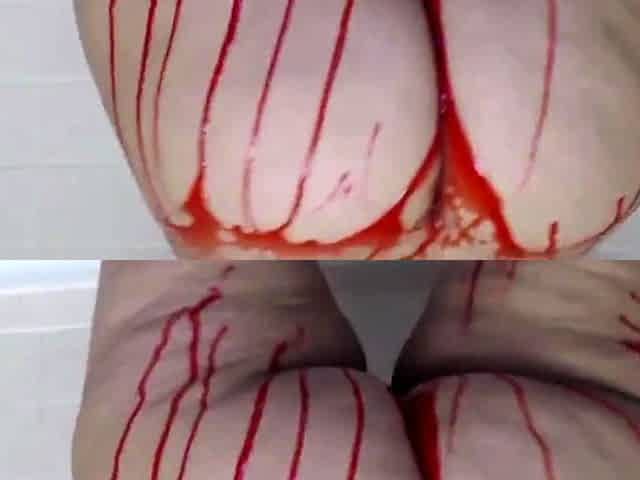 Wearing a little costume and no pants, this little bitch had a great time playing with her pussy.