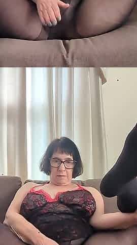 Big Busty Slut Shows off Curves, Feet and Body in Stockings