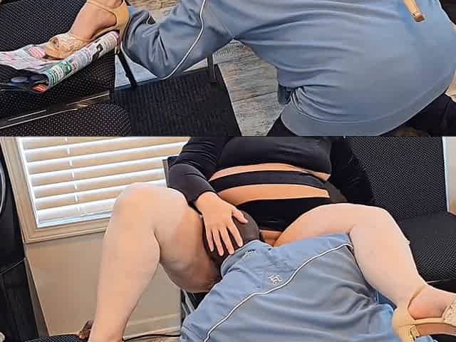 BBW milf gets caught by a stranger sniffing her dirty panties in a doctor's office