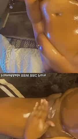 Naked Chubby Slut Oiling up Her Small Boobs, Big Ass and Swollen Pussy