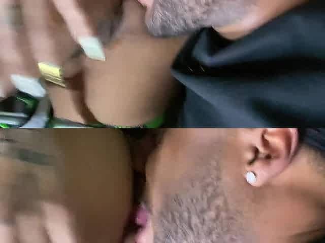 Ebony stud feasts on and pounds curvy black babe's dripping pussy in his flat