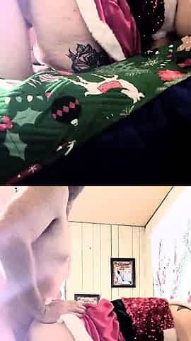 Femboy in a short petticoat with a chubby butt bounces on sex toy