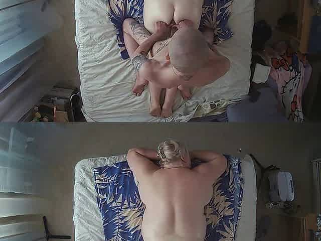 neighbour gets an oil massage drilled in the butt and twat with cum on her butt cheeks