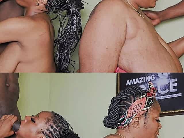 Babes Both Fucked in Mouth by 2 Big Cocks