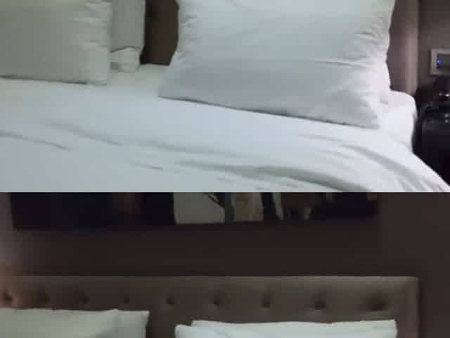 Black Girl Leans Over In Bed And Sucks On A White Cock