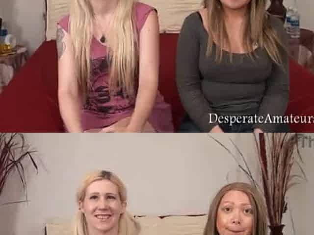 Flirtatious Peta Jensen and Tina Kay at straight hair trailer