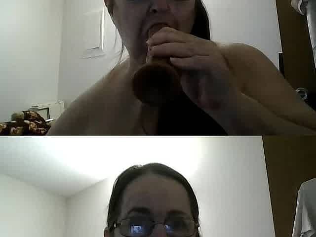 Sucking 2 dongs during the time that clip chatting fan