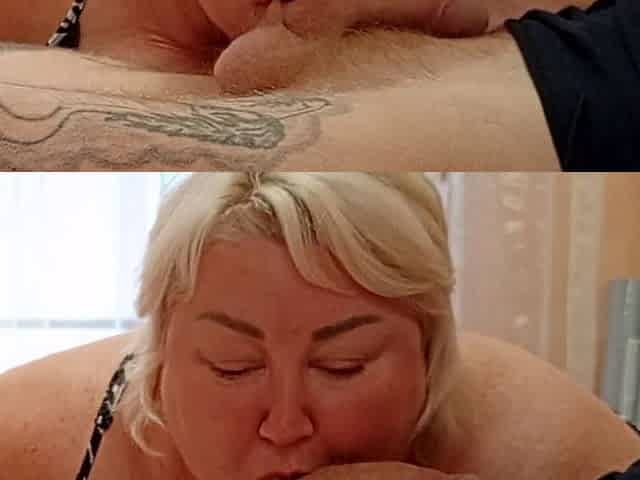 Stepmom Zona901 gives an incredible blowjob and makes him spurt!