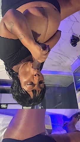 Hawt ebony beauty sitting on a dong.