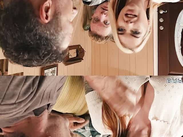 Two young men with big dicks fucked a busty blonde Aderes Quin