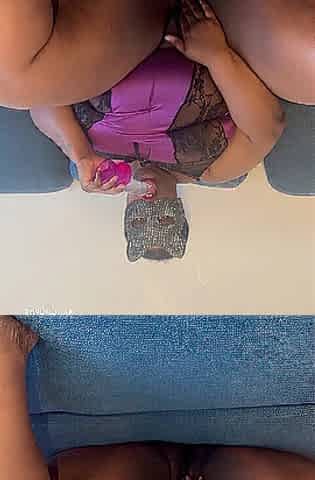 Brown BBW chewing bubblegum, blowing bubbles, and playing with her pussy