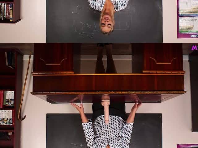 Big bottomed and ample breasted teacher Beth plays with suction cup dildo