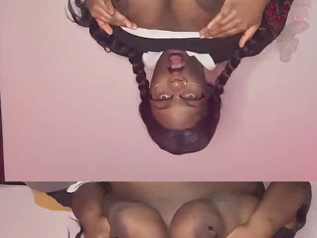 Ebony hottie with big boobs Entice plays with her trimmed pussy