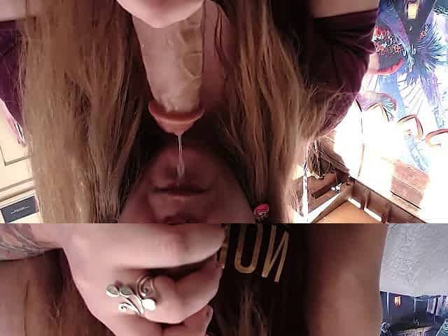 Sweetheart Nerdy is enjoying sucking a huge rubber dick on cam