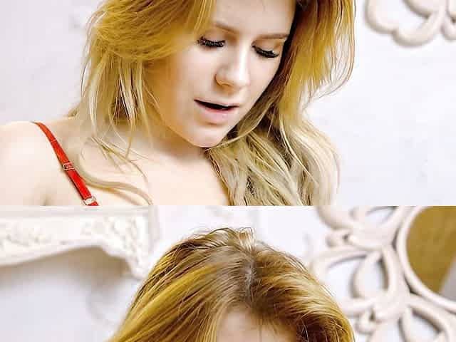 Blonde angel Chloe Madison sticks a green toy in her shaved pussy