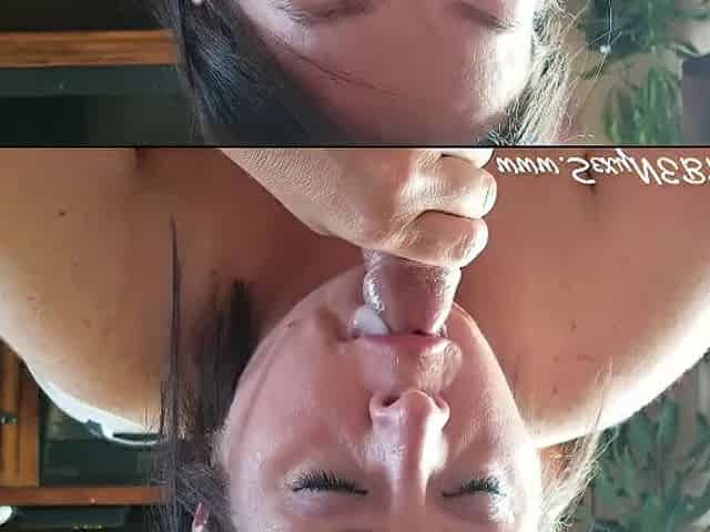 "Chubby Brunette Chelsea Dagger Toys Her Muff While Sucking on a Dildo"