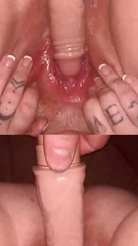 Pussy Flowing In Ecstasy From Fucking Huge 12 Inch Dildo