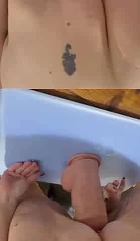 BBW Fucks Dildo in Shower