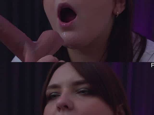 Cock Hungry Whore on Cam Sucks Dildo Fast with Red Lipstick