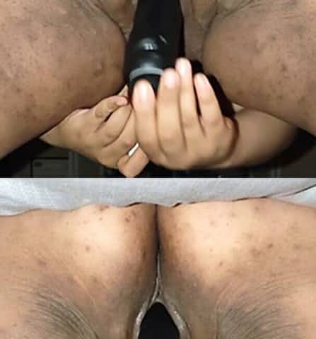 Spectacular curvy ebony masturbates African crotch close up
