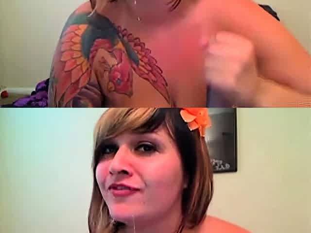 Tattooed Babe With Huge Tits Deep Throats Her Dildo