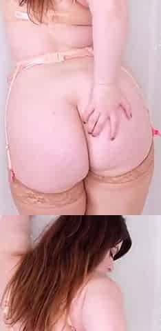 Chubby BBW with pink hairs April Flores touches her crack