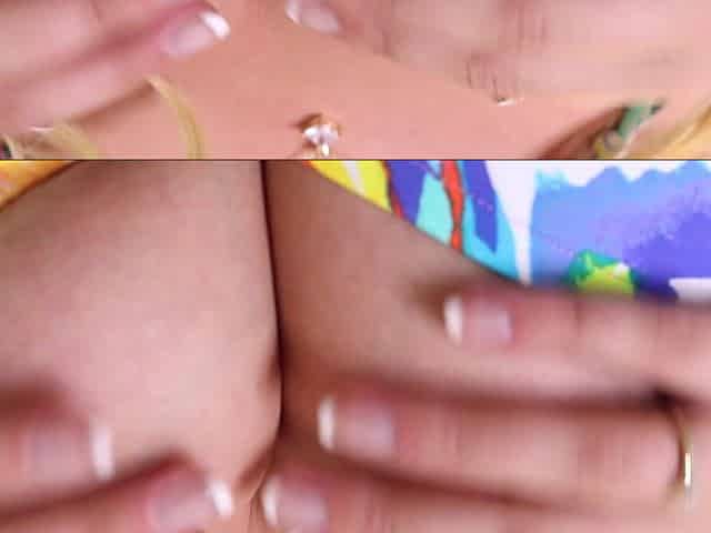 Sexy as hell busty blondie Melody is enjoying touching her shaved pussy