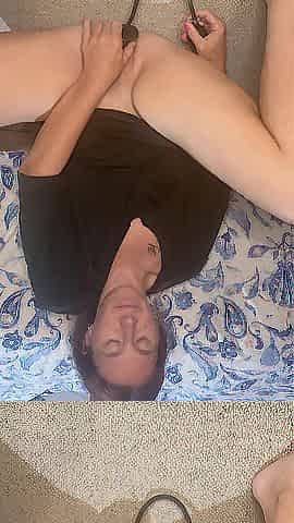 Lactating and Masturbating with My Sex tool Stuck against the wall, beneath view