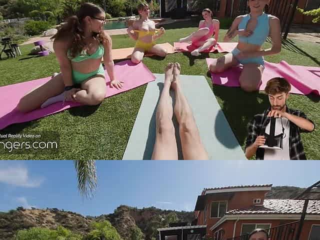 4 Dashing Teens Turn Th Outdoor Yoga Class Into Crazy Orgy, Sharing Their Coach's Dick In VR POV