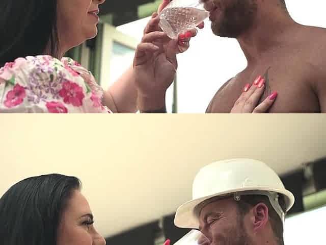 Blonde Chubby MILF Gives Horny Guy A Blowjob