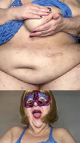 Grandma fondles her bulky body
