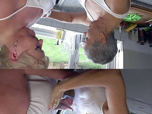 Stockinged bbw granny and brunette teen seducing each other's cooch