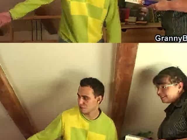 Grandma Miluska Fucking A Young Video Store Clerk. Blonde horny grandma walks in a video store trying to find porn But, the youn