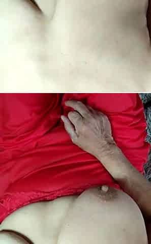 Granny Anika Sucks Her Saggy Tits.