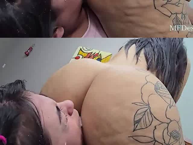 INTENSIVE LESBO SEX LEAVES SOFA MOIST IN SQUIRT